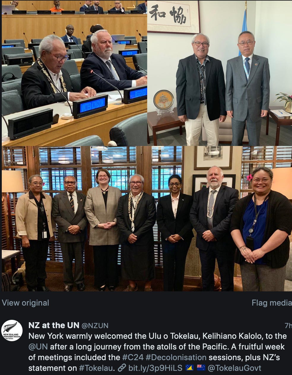 This month Aotearoa was back before the UN Special Committee on Decolonization (or the Committee of 24 or C24) which was reviewing the slow progress toward Tokelau independence. Among the nations earnestly studying Aotearoa’s progress were those paragons of freedom and rights, China, Cuba, Iran, Russia and Syria. Before them was the Ulu of Tokelau, Kelihiano Kalolo, and the Administrator, Donald Higgins, who both explained that due to Covid-19 lockdowns it had been three years since Tokelau had appeared before C24. Lockdown, vaccines and, said, Kalolo, ‘high herd immunity of 96 percent’, meant Tokelau had escaped the worst of the virus.